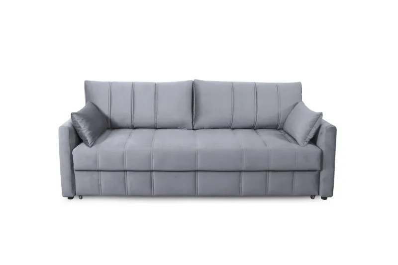 Приспинные подушки, сиденье и подлокотники дивана оформлены модной вертикальной стёжкой в современном стиле.
