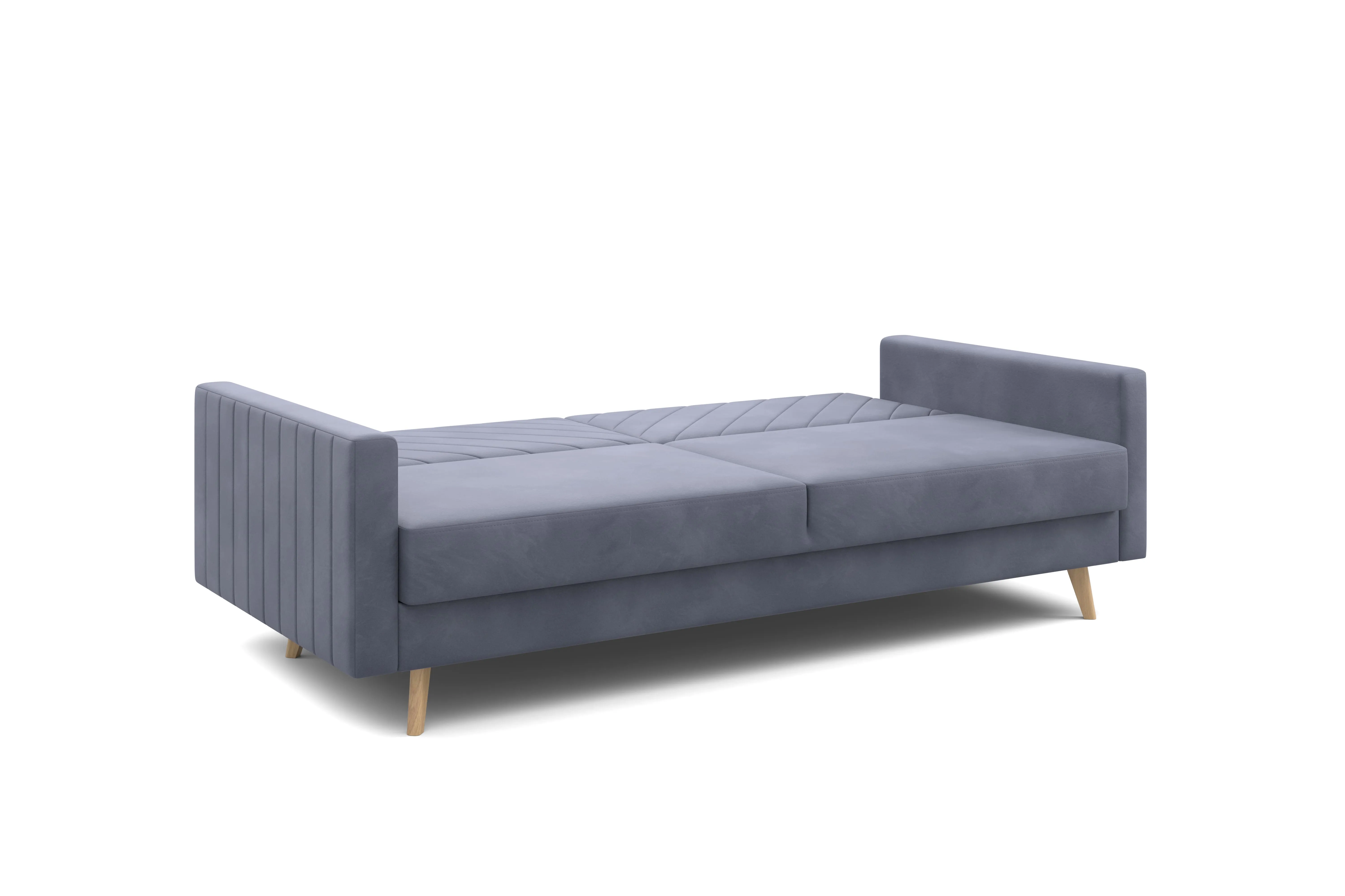 Обивка из велюра не только роскошно выглядит, но еще и практична в эксплуатации, а также имеет отличные показатели износоустойчивости.Высокие опоры из массива березы придают дивану визуальную лёгкость, декоративная отстрочка на подушках и боковинах придают приятный объем. Подушки из велюра контрастного цвета входят в комплект.