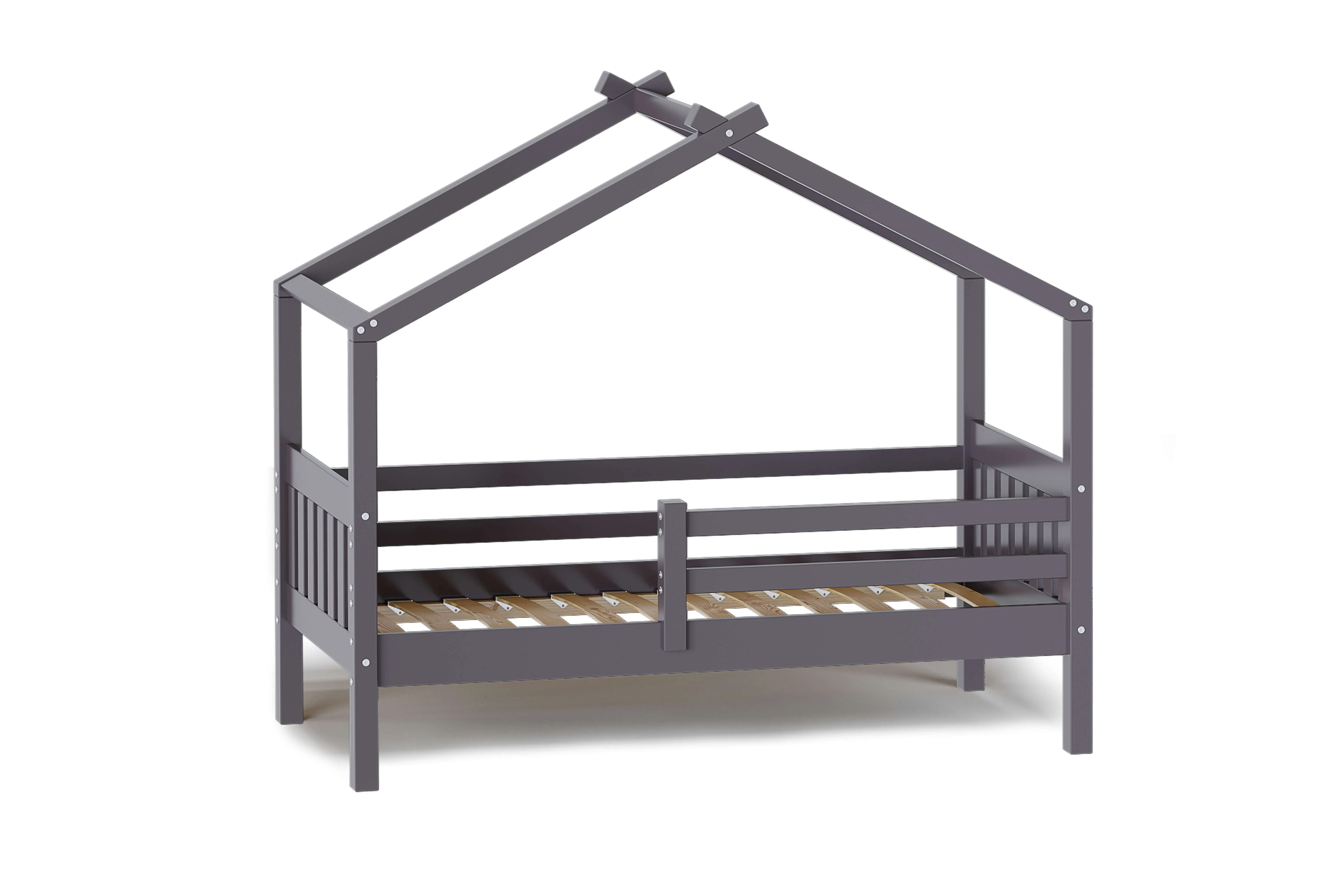 Каркас укомплектован основанием из поперечных гнутых ламелей. Головная и ножная спинки соединены стропилами, образующими крышу, благодаря чему малыш будет ощущать себя в собственном уютном домике. В комплектацию кровати входит ортопедическое основание из гнутоклееных ламелей.