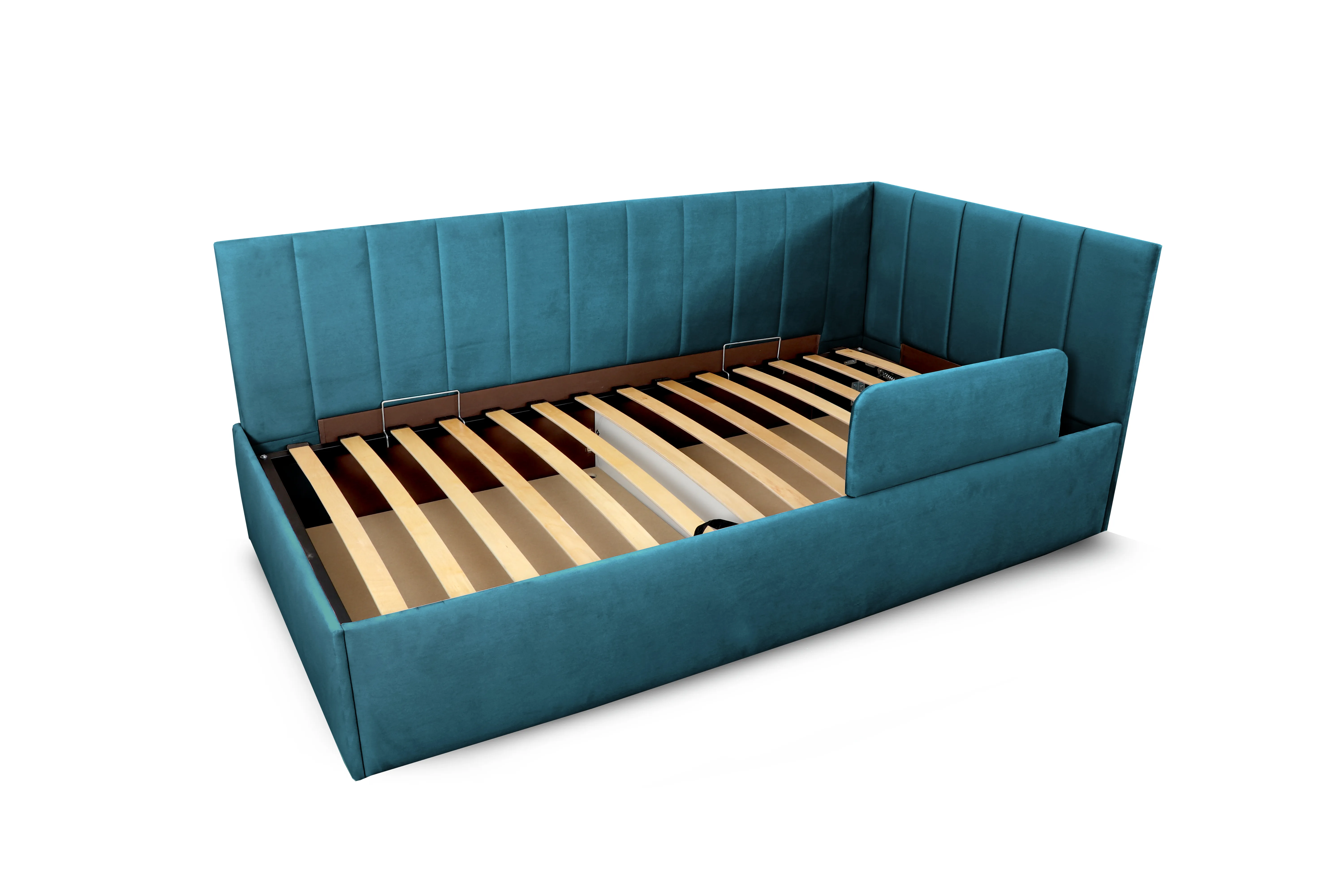 Кровать “Хеппи-2” - это идеальное решение для детской комнаты. Мягкая обивка из приятного на ощупь, гипоаллергенного велюра обеспечивает комфорт и уют во время сна.