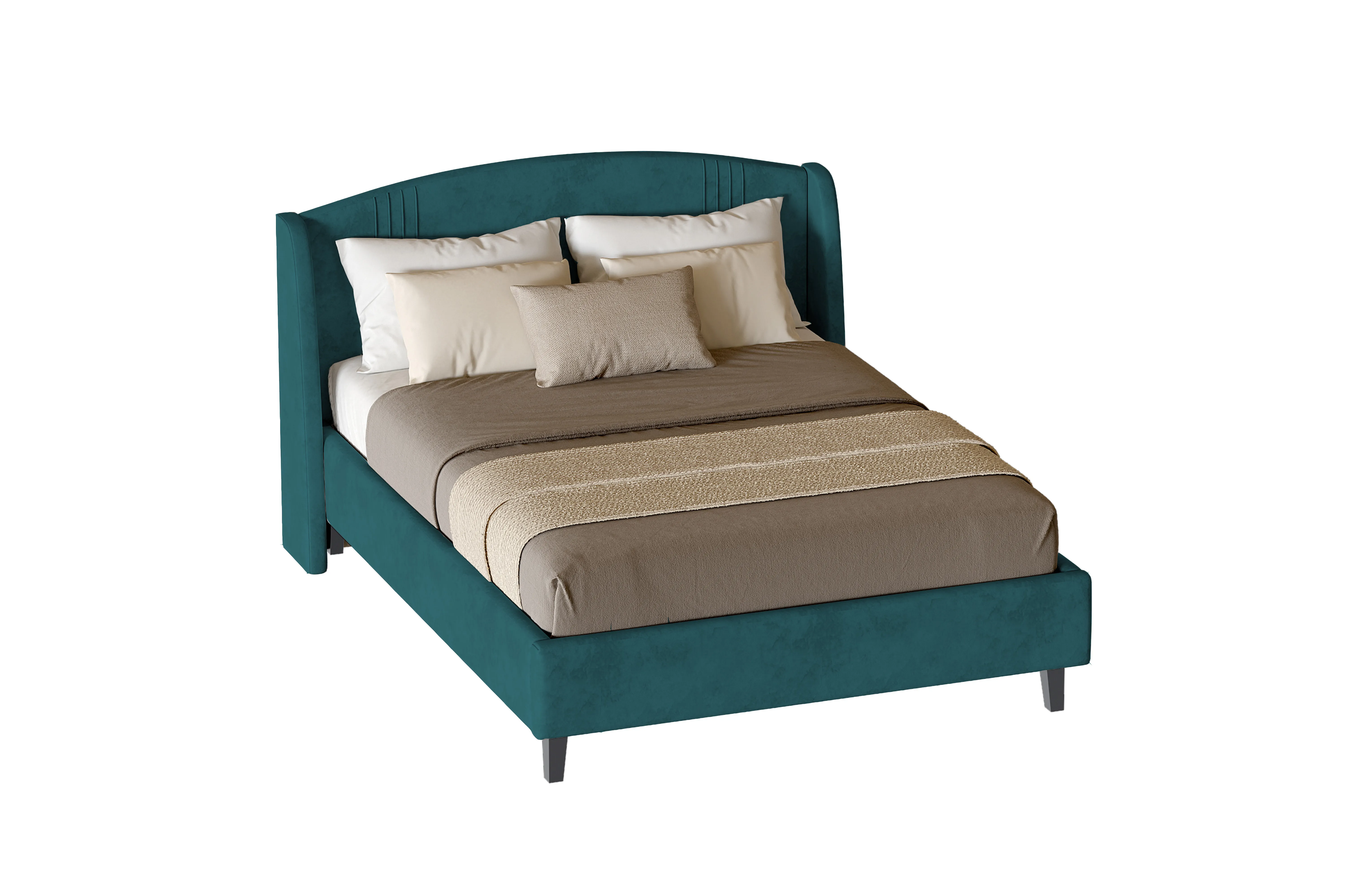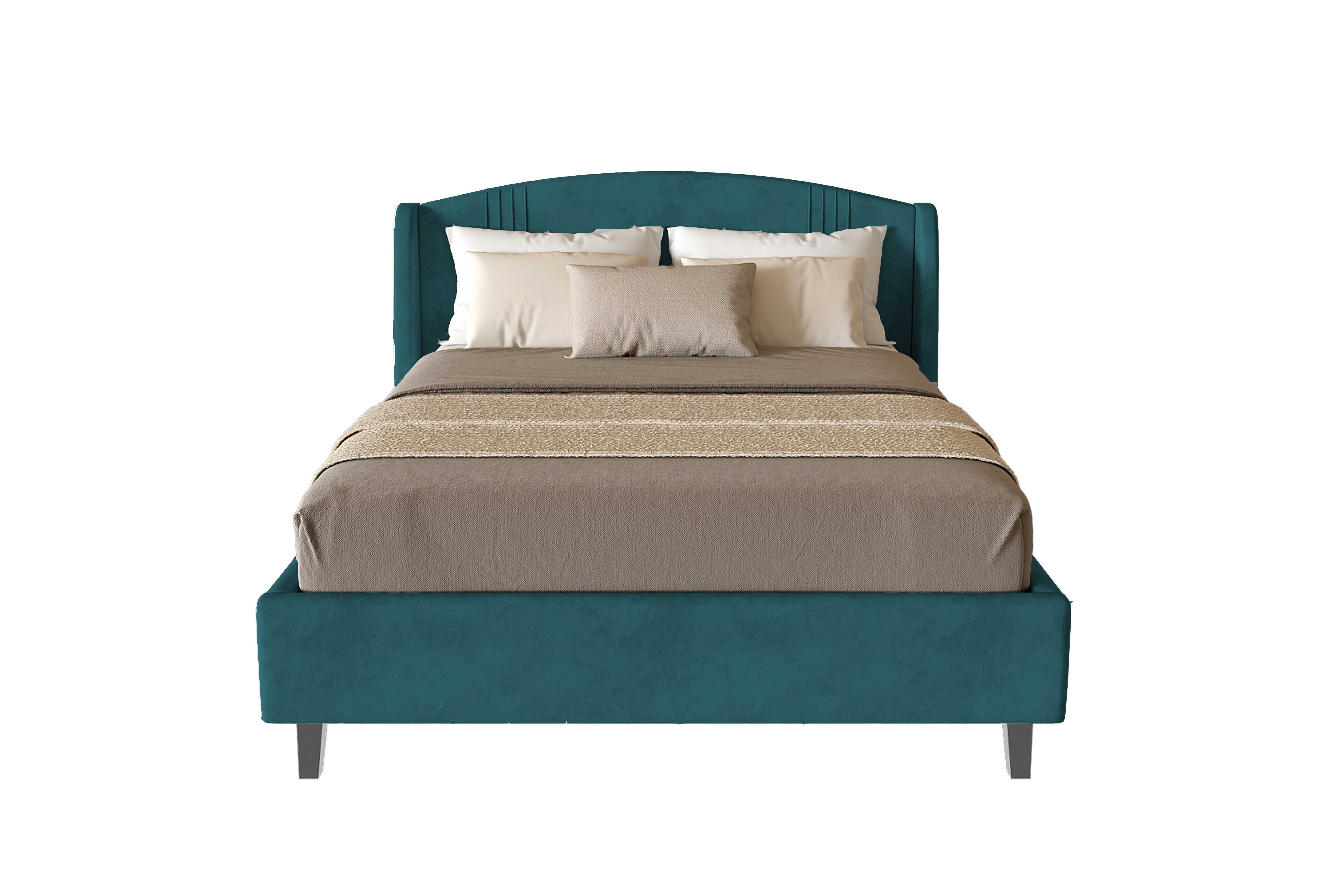 Каркас кровати обит мягким и приятным на ощупь велюром, который хорошо держит форму, устойчив к механическим воздействиям (в том числе к зацепкам от когтей животных), гипоаллергенен.