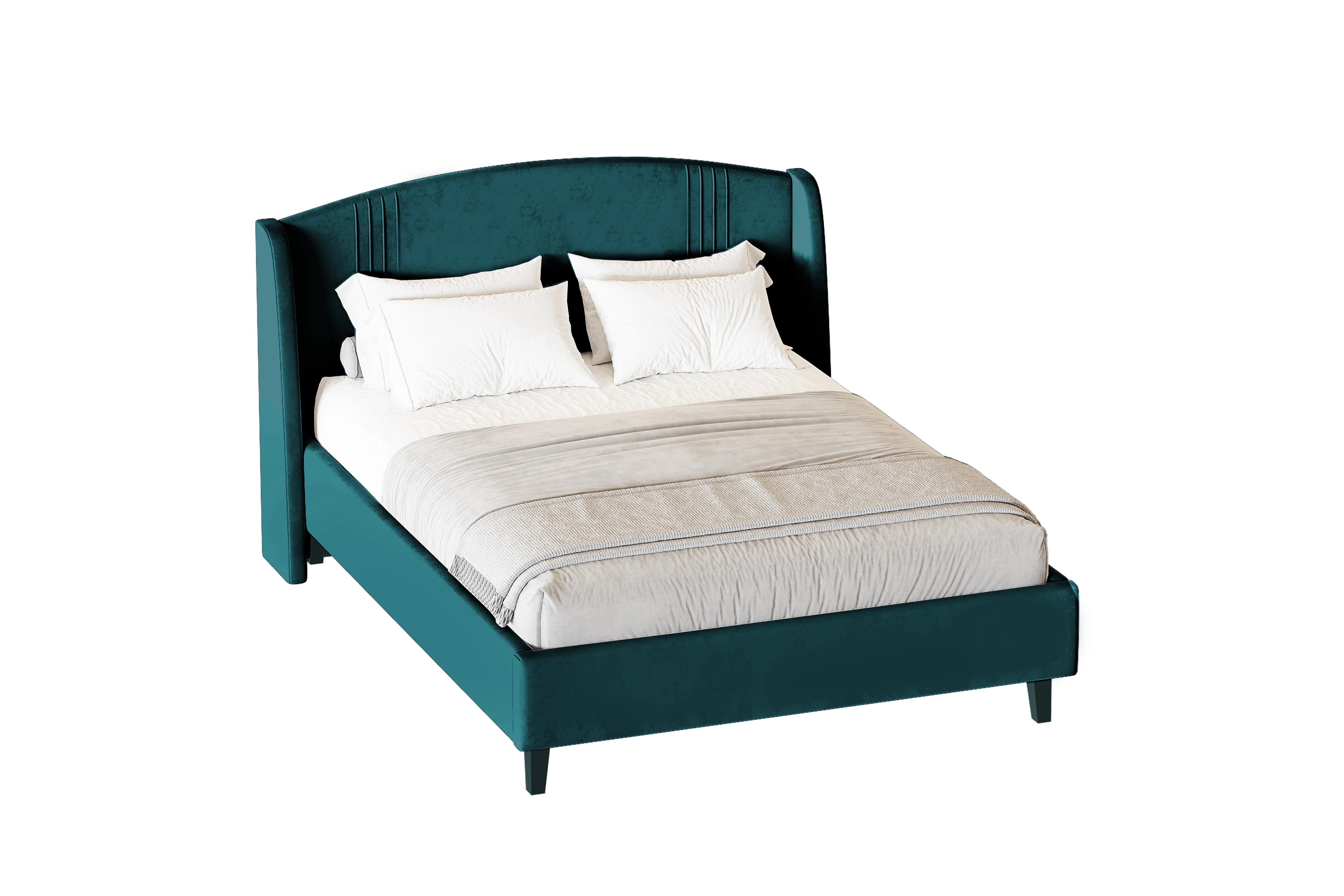 Каркас кровати обит мягким и приятным на ощупь велюром, который хорошо держит форму, устойчив к механическим воздействиям (в том числе к зацепкам от когтей животных), гипоаллергенен.