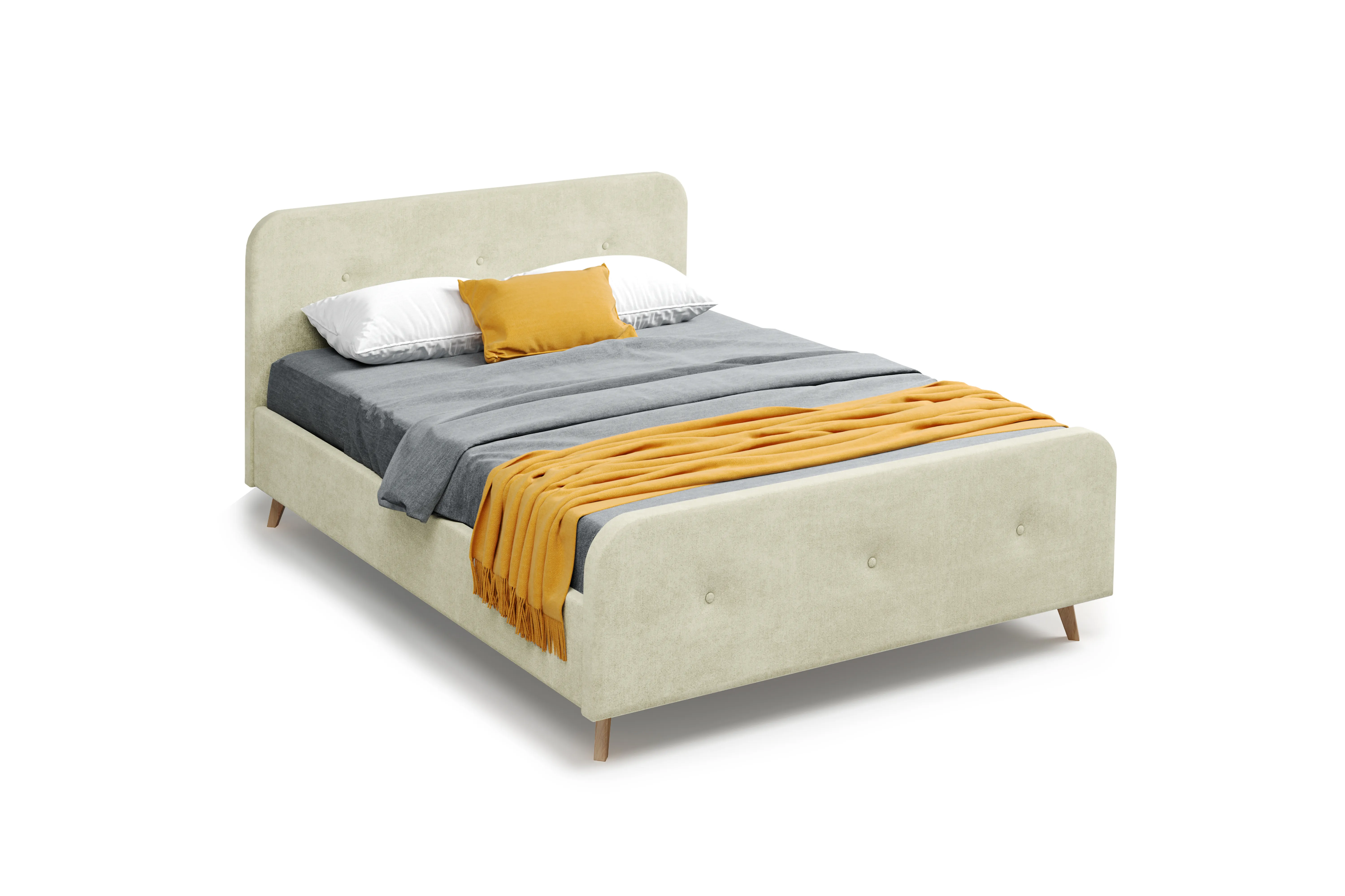 Изголовье имеет закругленный силуэт, обтянут велюровой тканью с пуговицами, что обеспечивает дополнительную мягкость и уют. Высокие стильные ножки из массива березы создадут ощущение легкости и воздушности.