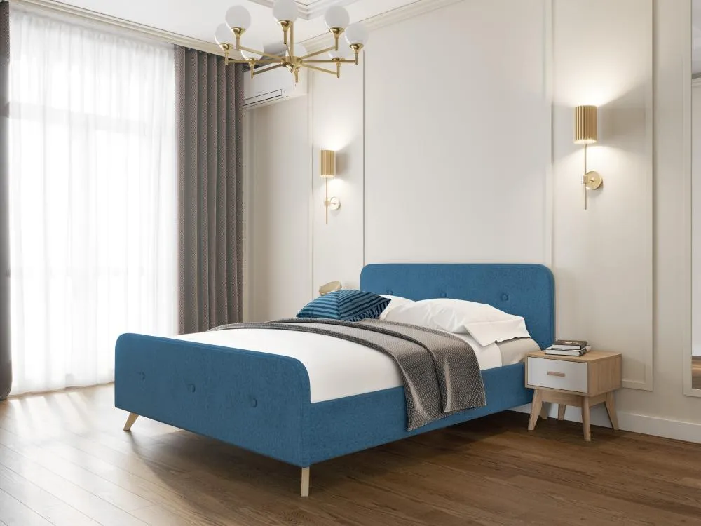 Изголовье имеет закругленный силуэт, обтянут велюровой тканью с пуговицами, что обеспечивает дополнительную мягкость и уют. Высокие стильные ножки из массива березы создадут ощущение легкости и воздушности.