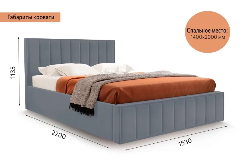 Кровать "Женева" 1400 СТАНДАРТ Вариант 4 Мора серый