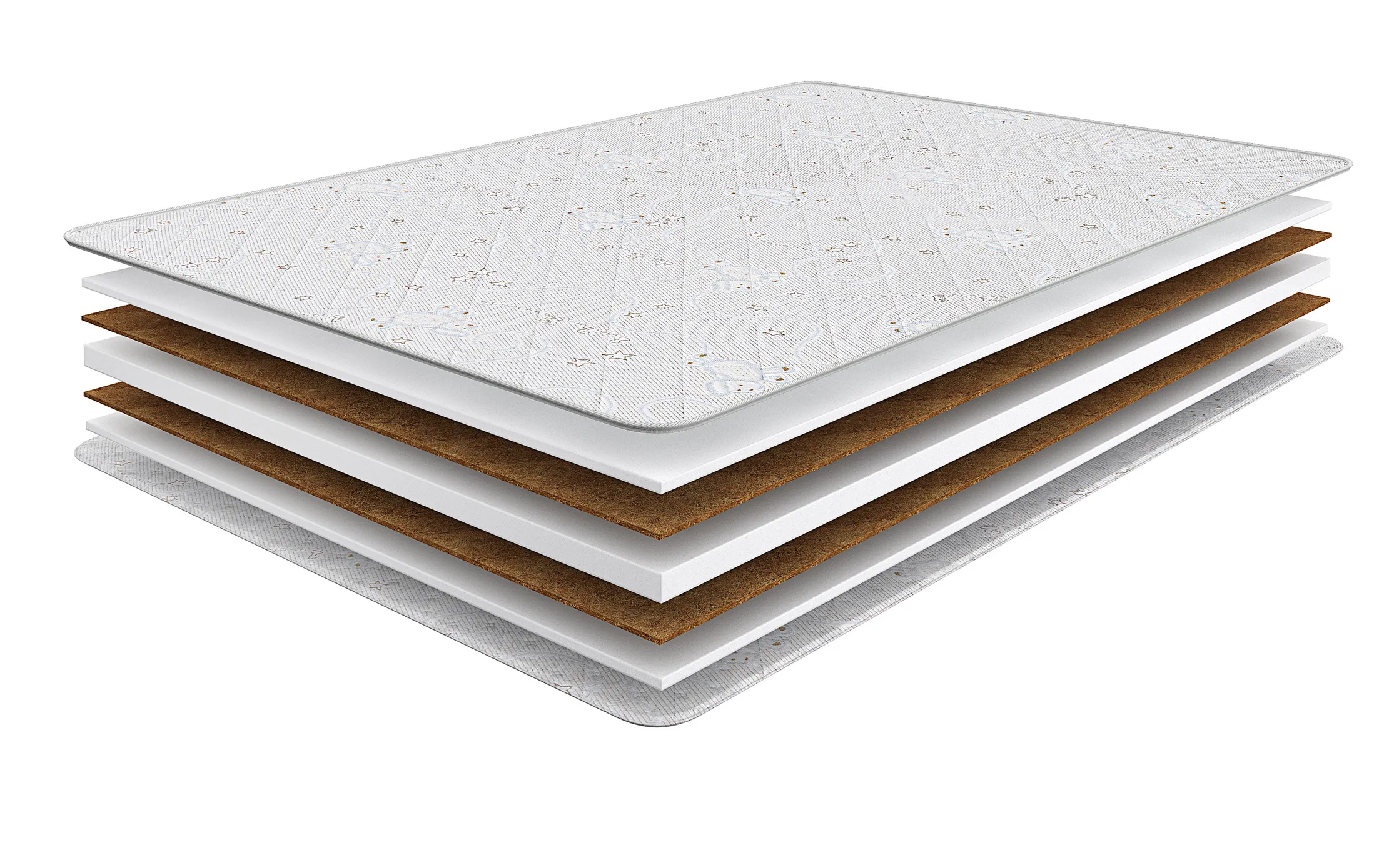 Жесткость кокосового волокна обеспечивает оптимально правильную поддержку позвоночнику, а ортопена увеличивает анатомичность матраса, что способствует хорошему кровообращению в организме, повышает комфортность и располагает к уютному и спокойному сну.