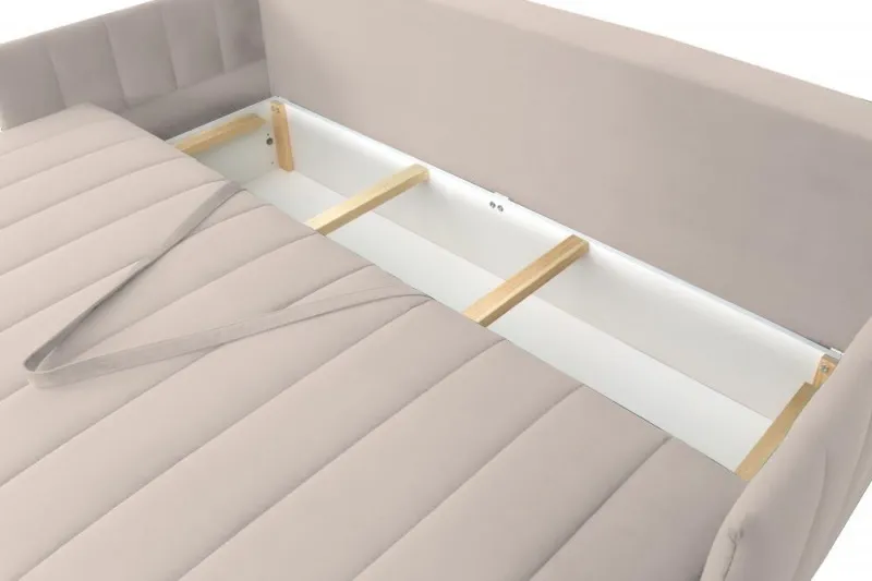 Диван удачно зонирует пространство и дополняет необходимым функционалом. В основании спального места блок независимых пружин для комфортного сна. Вместительный ящик для хранения постельных принадлежностей.