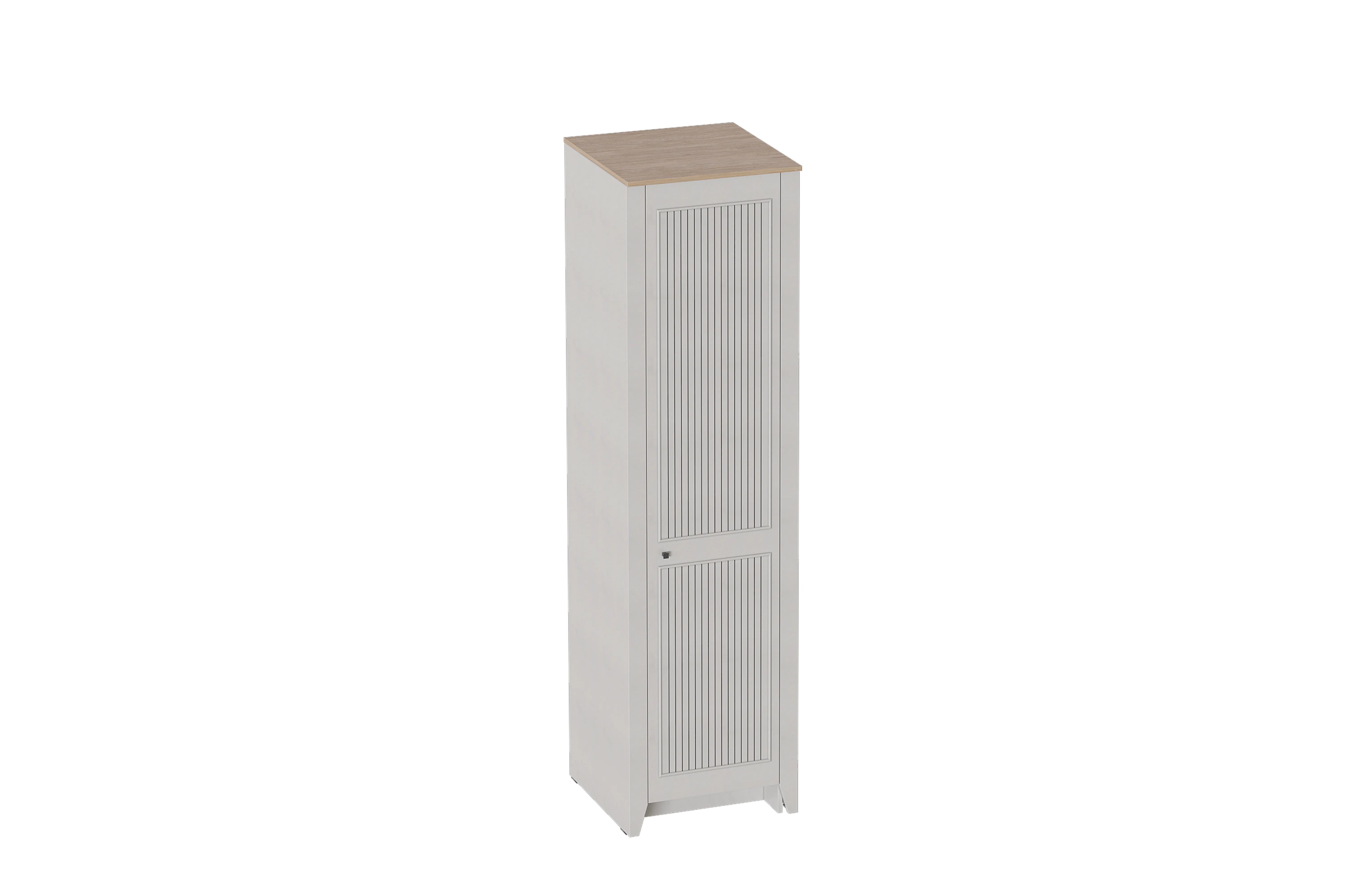 УФ-фотопечать полосок на фасадах в обрамлении пластиковых молдингов придает изделию оригинальный стиль современной классики. Шкаф комплектуется пятью полками. Задняя стенка шкафа изготовлена из ХДФ. На опорах размещены войлочные подпятники.