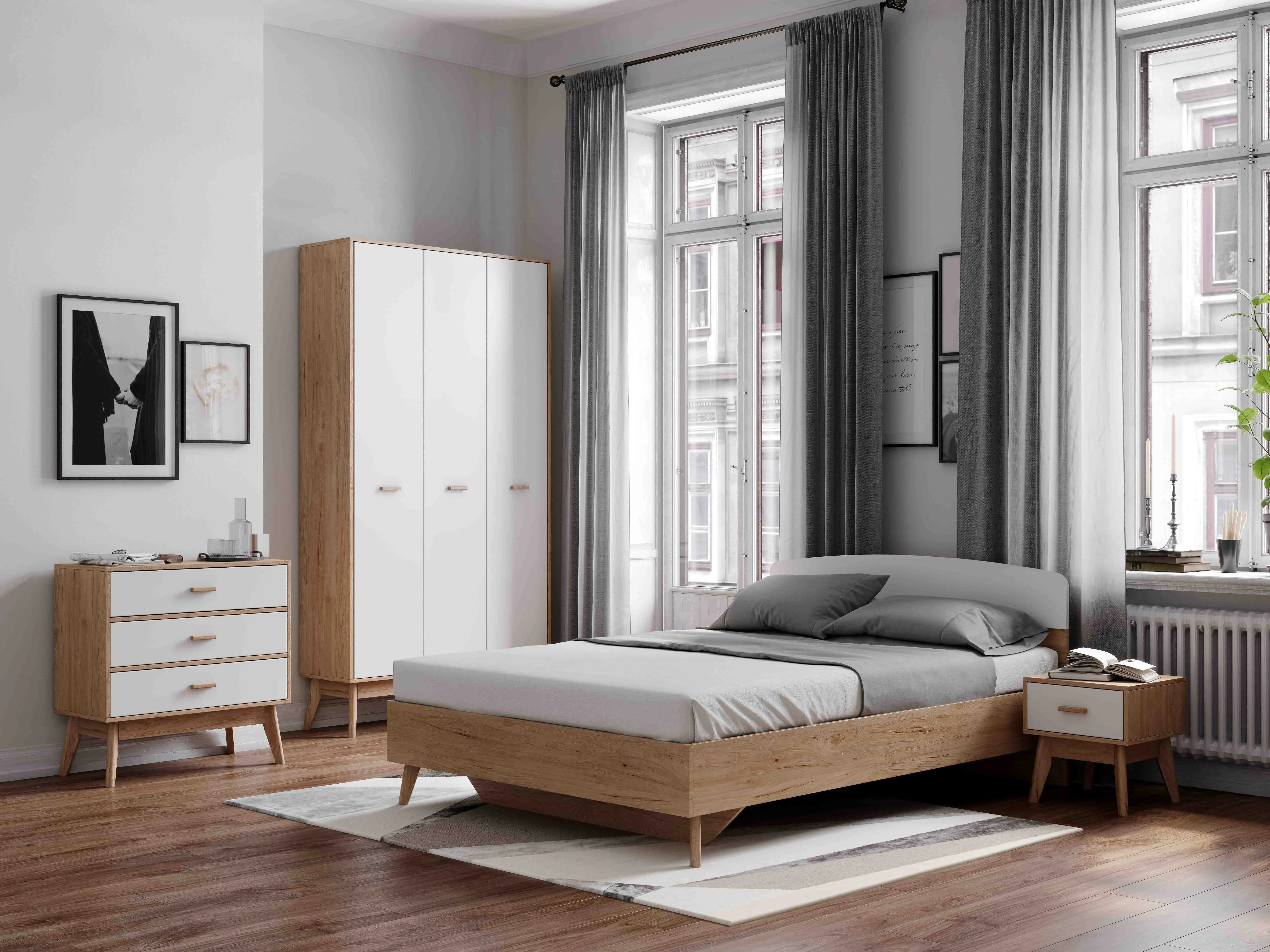 Гарнитур подходит как для просторных, так и для небольших спален, помогая эффективно использовать пространство и создавать уютное и светлое место для отдыха и сна.