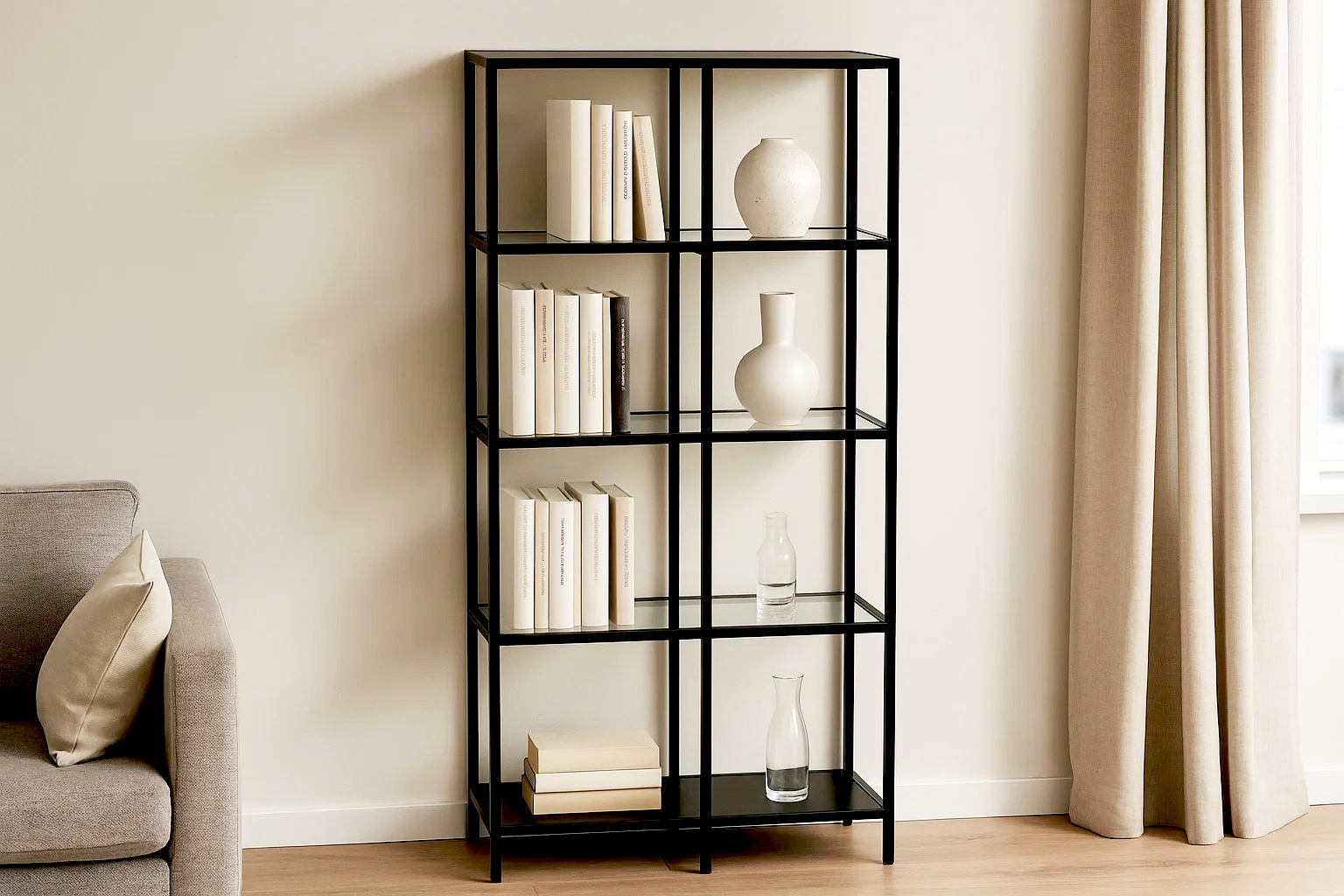 Стеллаж со стеклянными полками "Нора" гостиная 900
