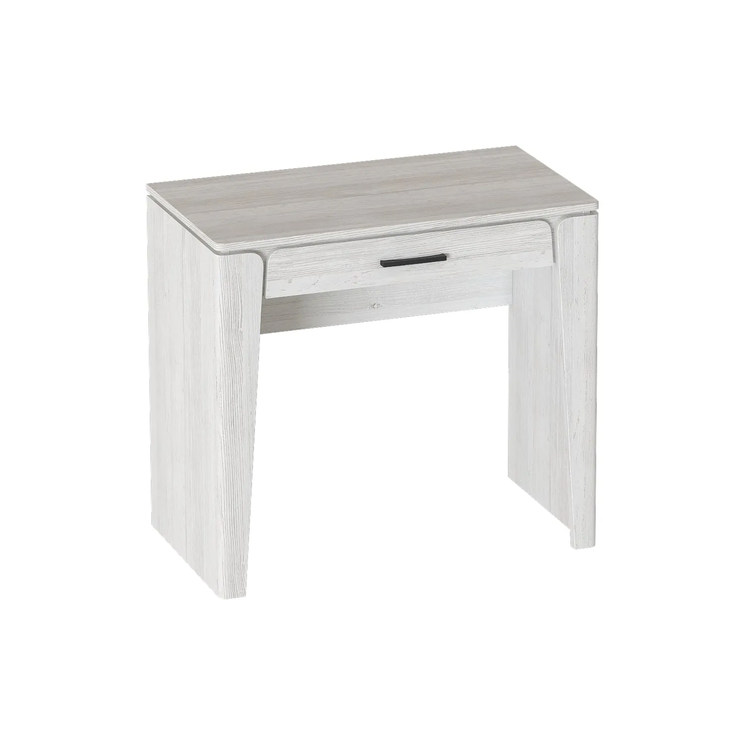 Корпус изготовлен из ЛДСП, а фасад украшен округлыми стильными элементами, выполненными из МДФ. Выдвижной ящик обеспечит дополнительное место для хранения.