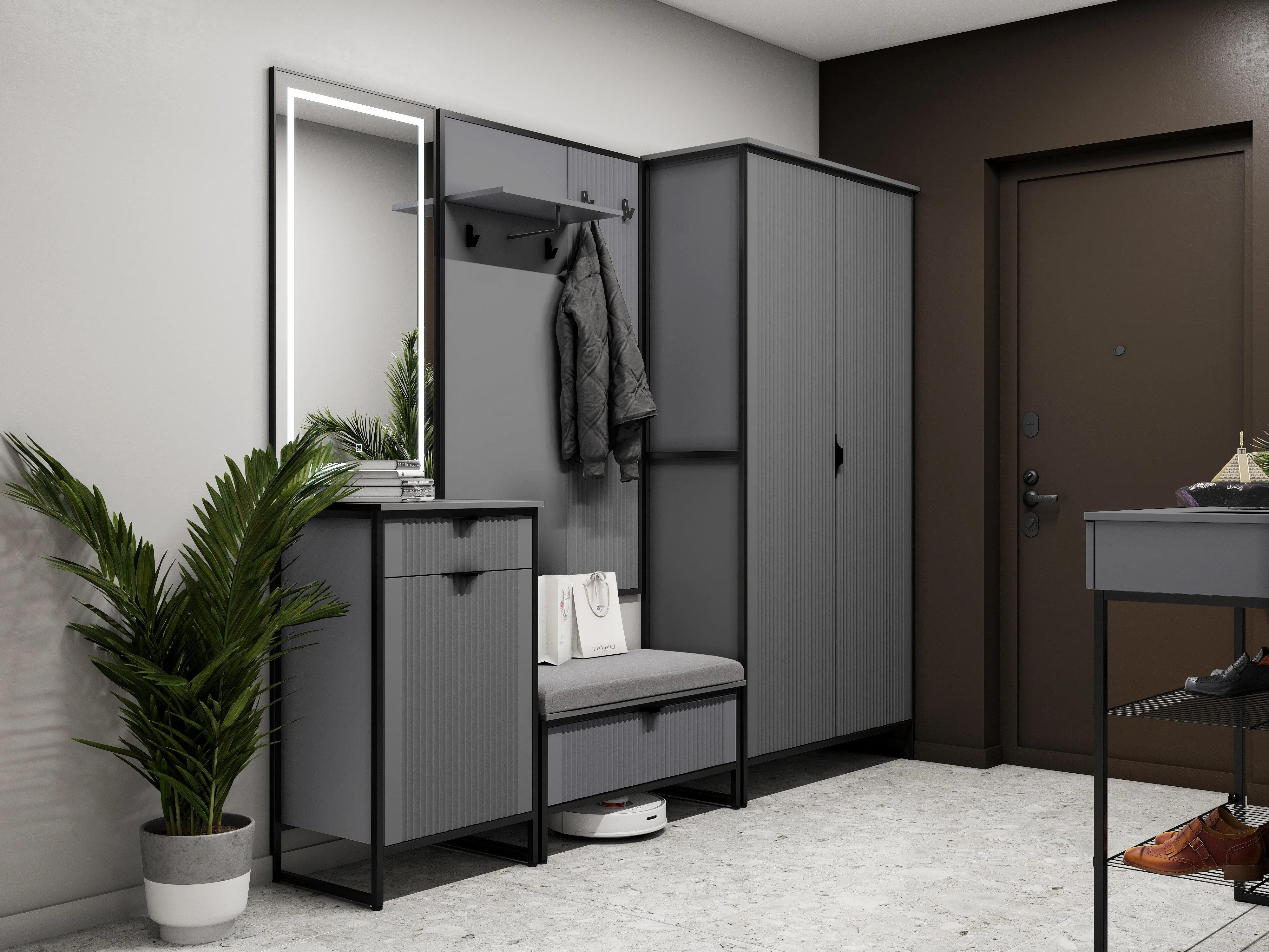 Тумба 1 дв и 1 ящ "Нора" прихожая Графит