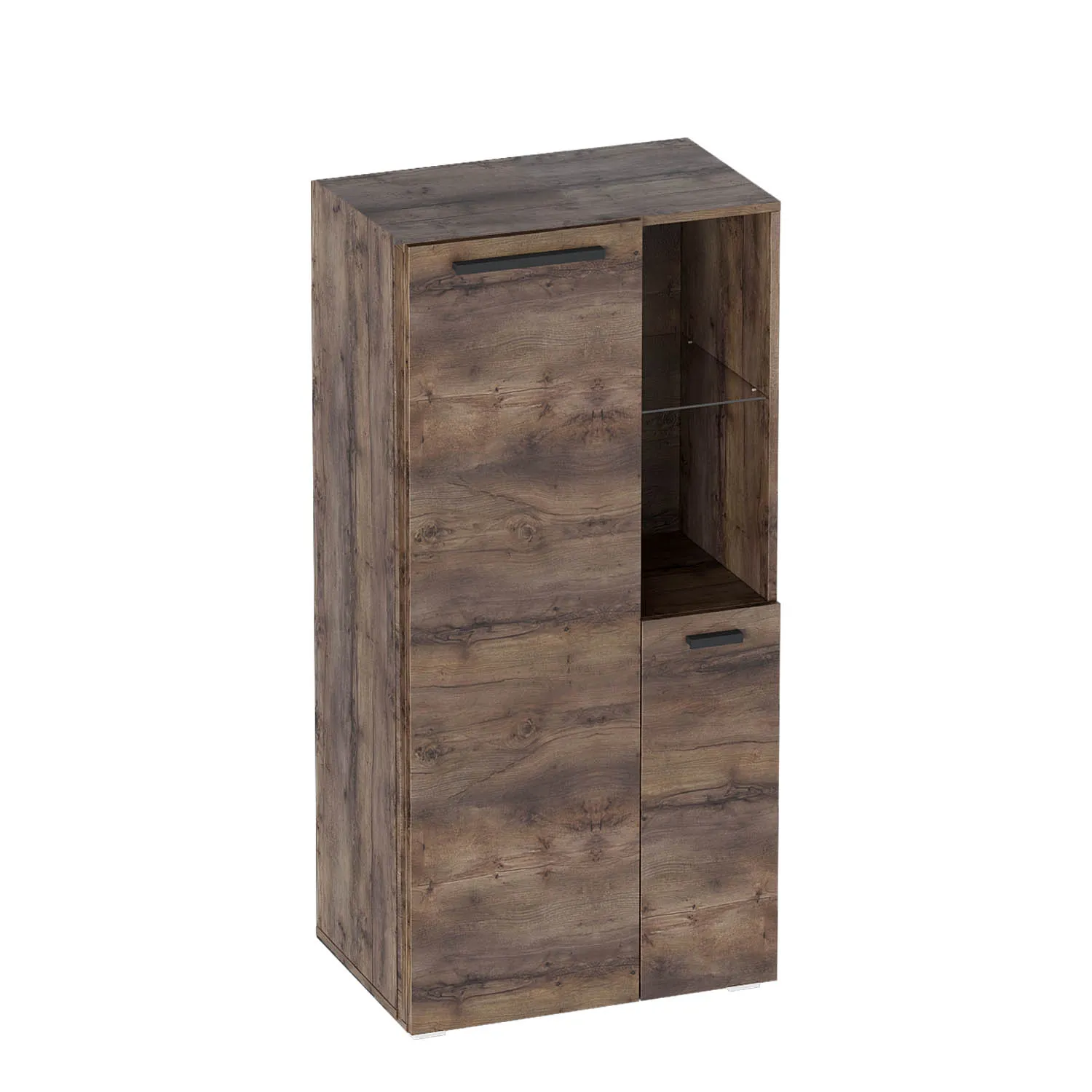 Данная модель имеет две двери, за которыми можно удобно разместить различные предметы обихода - от книг и журналов до памятных сувениров или семейных фотоальбомов. Наличие открытых полок позволяет держать под рукой необходимые мелочи, такие как пульт от телевизора или любимую статуэтку.